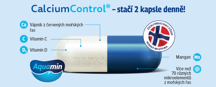 Kľúčovou zložkou CalciumControl je unikátny morský vápnik Aquamin - získaný z červenej riasy Lithothamnium calcareum, ktorá rastie na sopečnom morskom dne okolo pobrežia Islandu.